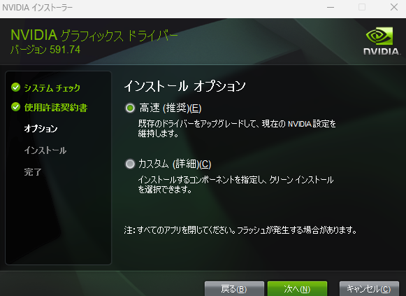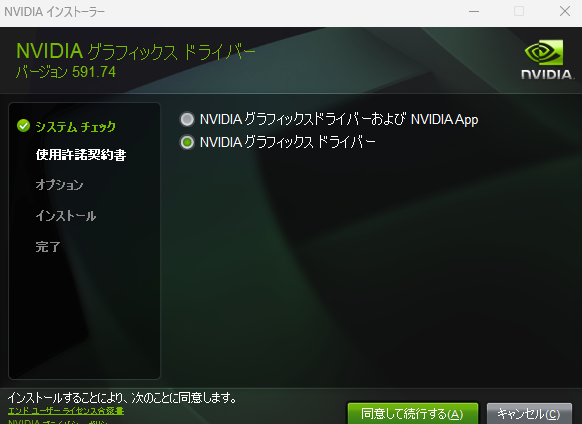 選択肢が2つあるが,NVIDIA グラフィックスドライバーを選択する.